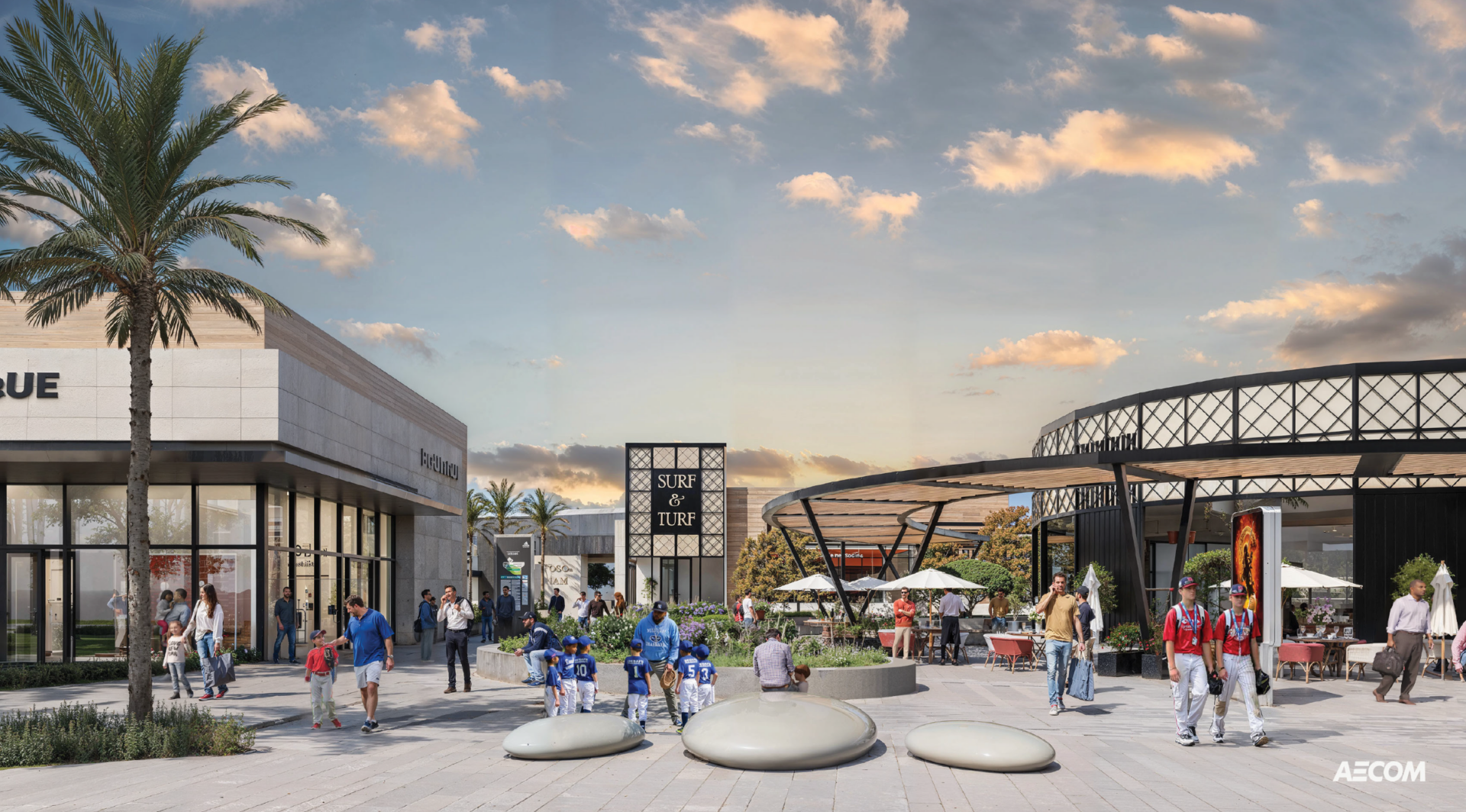 Designed by AECOM and MDSX, The Dynasty is envisioned as a walkable, all-in-one campus integrating indoor and outdoor sports venues, lodging, wellness amenities, retail, and public recreation. Plans call for a 150,000-square-foot indoor sports facility equipped with immersive simulation technology and data-tracking smart equipment for advanced athlete training. Seventeen multipurpose turf fields will support tournament play across a range of sports, including baseball, soccer, football, lacrosse, and track and field.