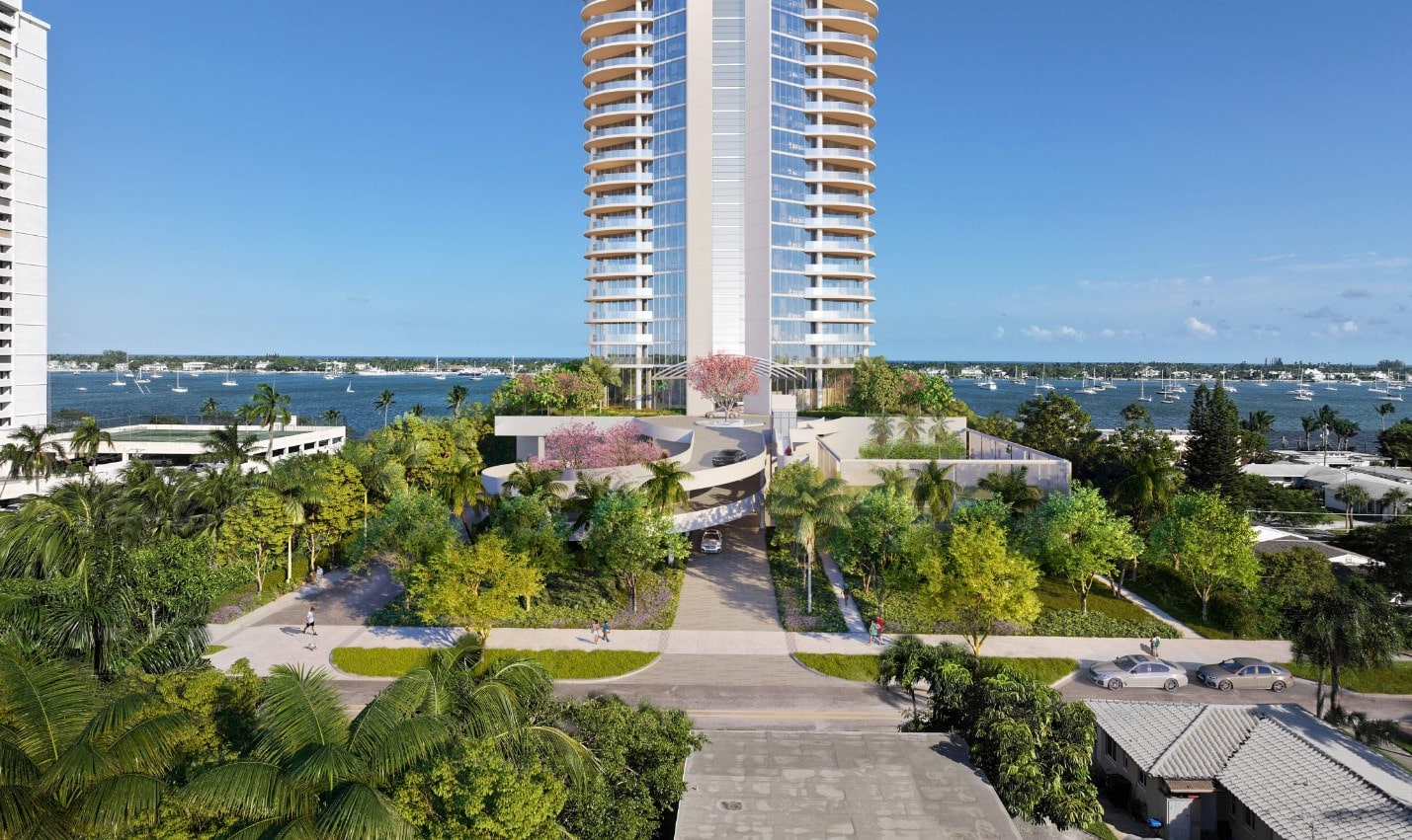 The development will replace a 72-unit low-rise completed in 1966 with a modern tower containing 97 residences, including townhomes, two- to four-bedroom layouts, and penthouses. Although the structure is significantly taller than the existing building, the overall density increase is limited, with only 25 additional residences planned. Property records show the parcel was acquired by 5400 N Flagler Limited Partnership, an affiliate of Great Gulf, for $28.5 million on February 12, 2024.
