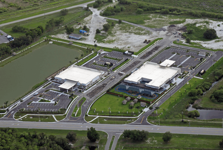 Next door, the Big Cypress Preschool measures 34,700 square feet and accommodates children between the ages of one and five. The program includes classrooms, a cafeteria, kitchen, administrative offices, and an open-air playground.