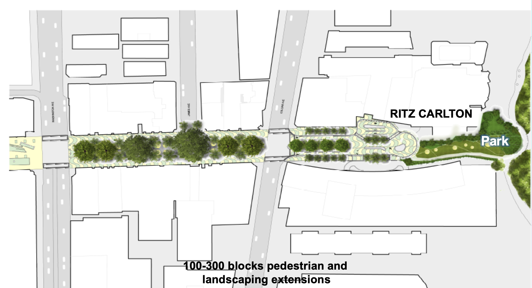 The Collins Avenue beach entrance, which sees more than 7,000 daily pedestrians, will undergo a full street redesign to improve circulation and safety. Proposed changes include revised lanes and medians, reduced vehicle-pedestrian conflicts, and improved ingress and egress for adjacent properties, including The Ritz-Carlton campus and loading dock.