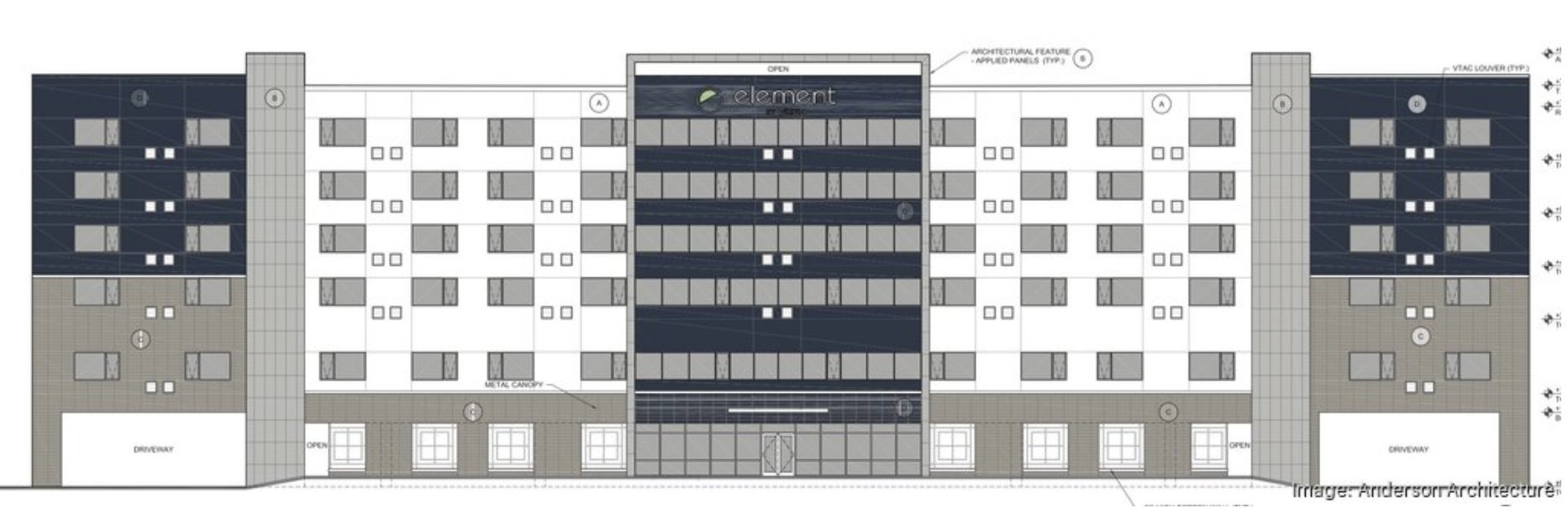 Miami-based Baywood Hotels has started construction on the Element by Westin hotel, a six-story project requiring close to 80,000 square feet of new construction. Plans call for 115 rooms and 71 ground-floor parking spots. Additionally, residents will have access to amenities on the second story, including a fitness center, dining room, and lounge.