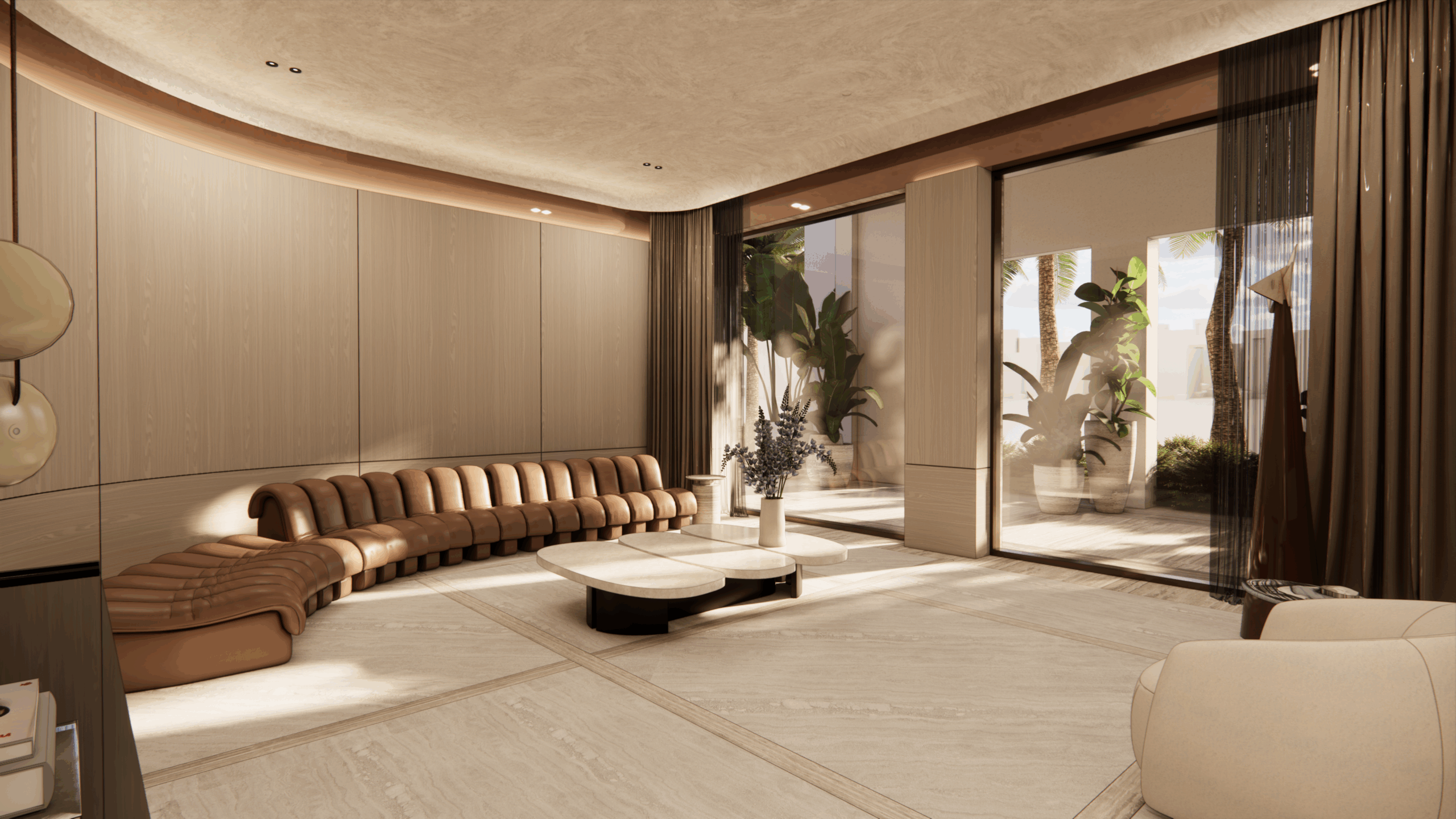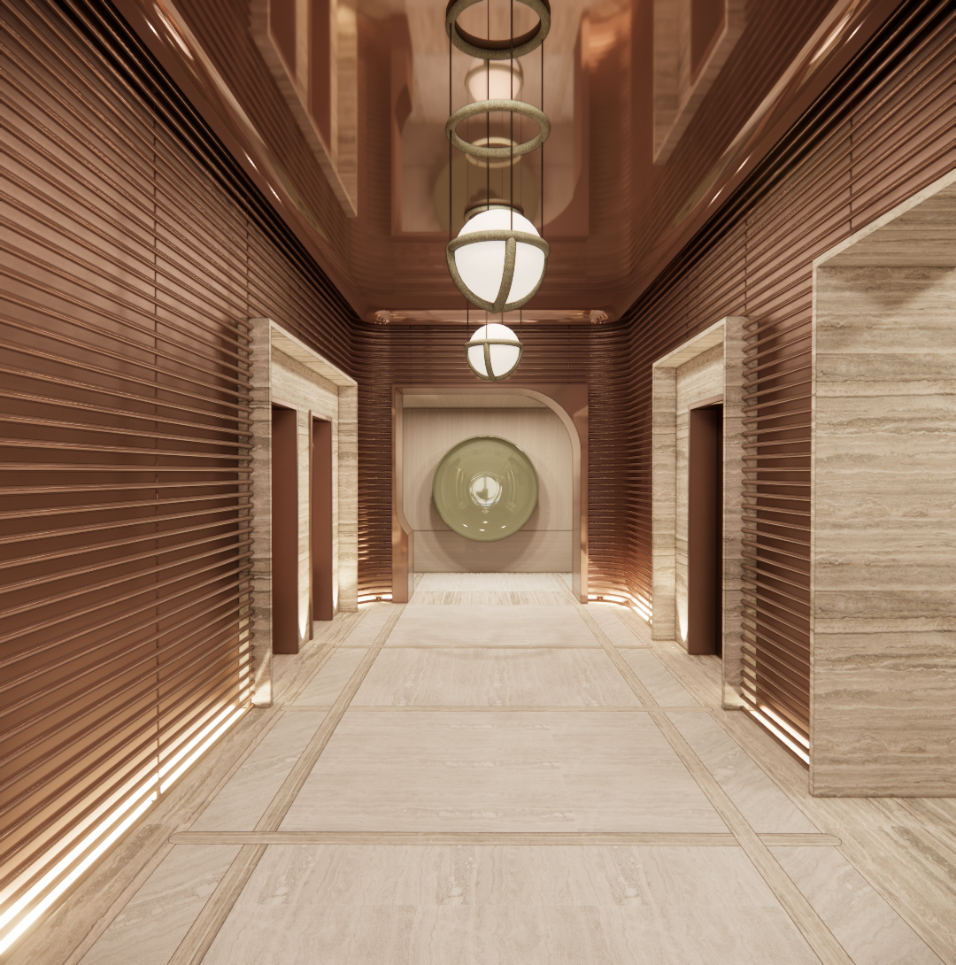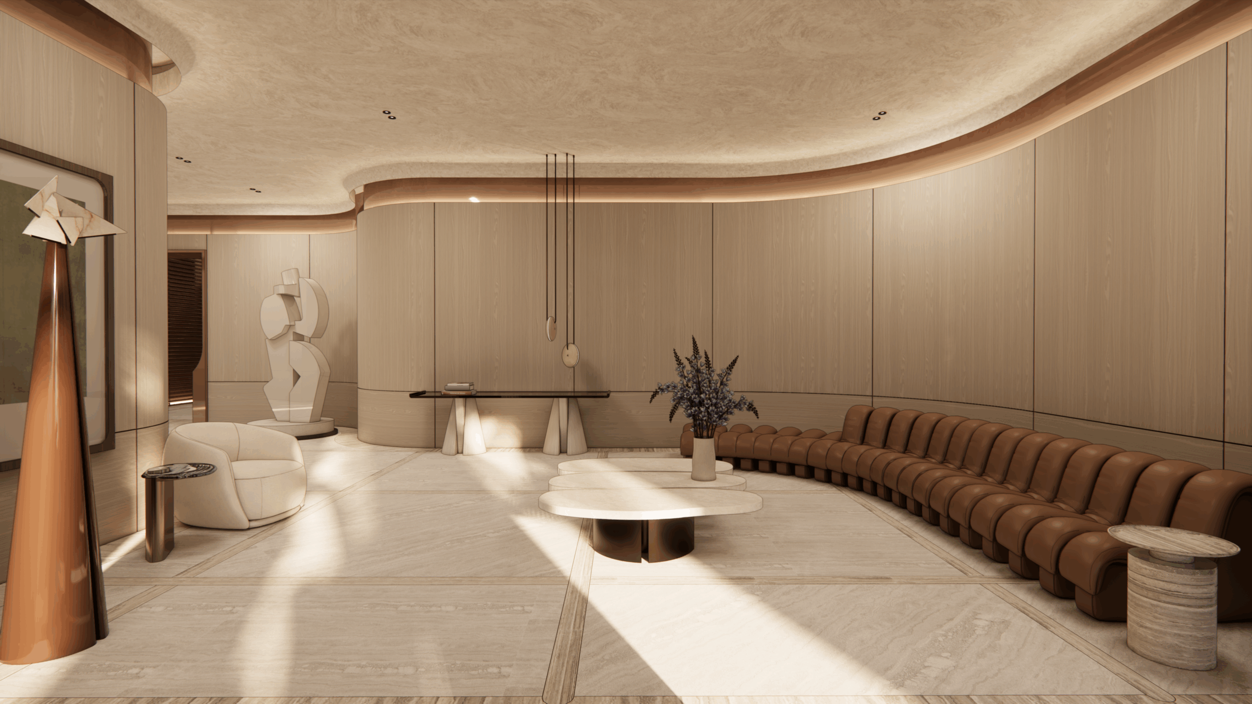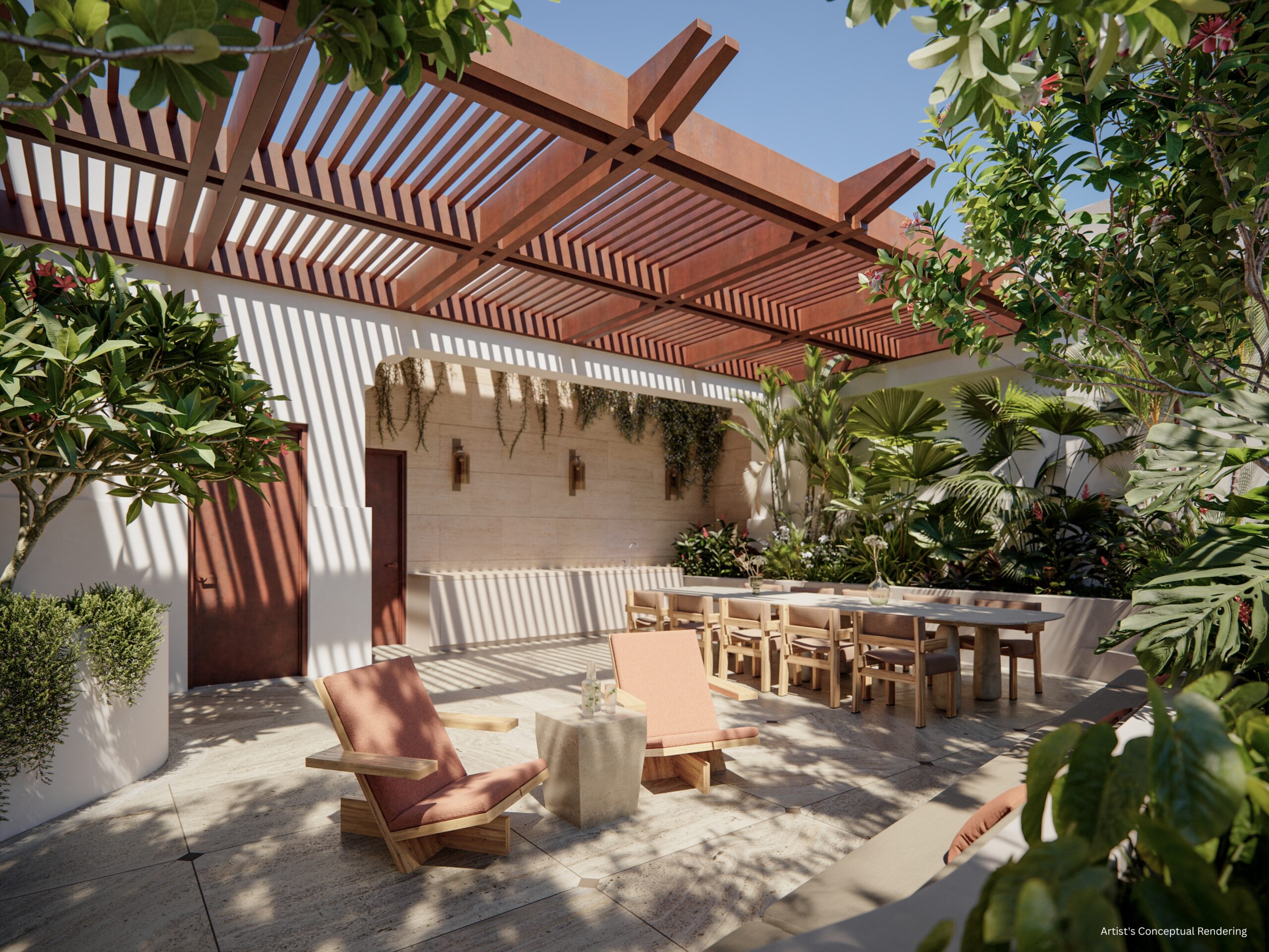 Jimenez, alongside interior designer Carlos Guevara, will curate the interiors of all social and shared spaces, including lounges, wellness areas, rooftop retreats, a fitness center, and a business lounge. Drawing inspiration from Coral Gables’ Mediterranean heritage and the original Alhambra Palace in Spain, Jimenez is developing a palette of arched forms, sculptural finishes, travertine flooring, medium-toned oak, and custom lighting. Metals in matte and aged copper will provide contrast and balance across the amenity program.
