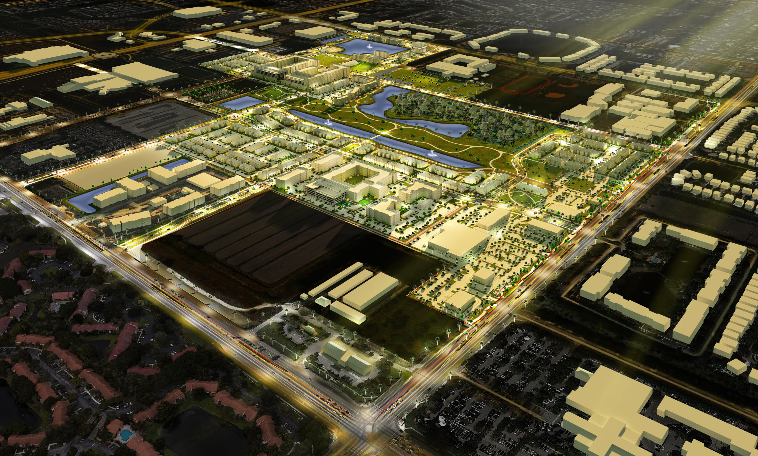 Planned across 12 development blocks, Mainstreet is envisioned as a pedestrian- and cycle-friendly district integrating residential, retail, dining, and civic spaces surrounded by ample greenery. With a projected build-out value surpassing $1 billion, the project ranks among the largest master-planned developments in Broward County. The overall plan includes approximately 80,000 square feet of grocery-anchored retail, 792 apartment units, 414 townhomes, 148 villas, and 296 condominiums.