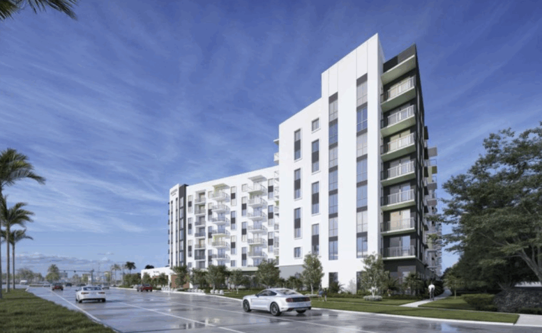 Mill Creek Residential wants to move forward with Modera Pompano Beach (or Modera Pompano by some sources), an eight-story apartment complex with 347 units. Residents would have access to various on-site communal amenities (with some centered around a courtyard), along with an eight-story parking garage with 457 spots.