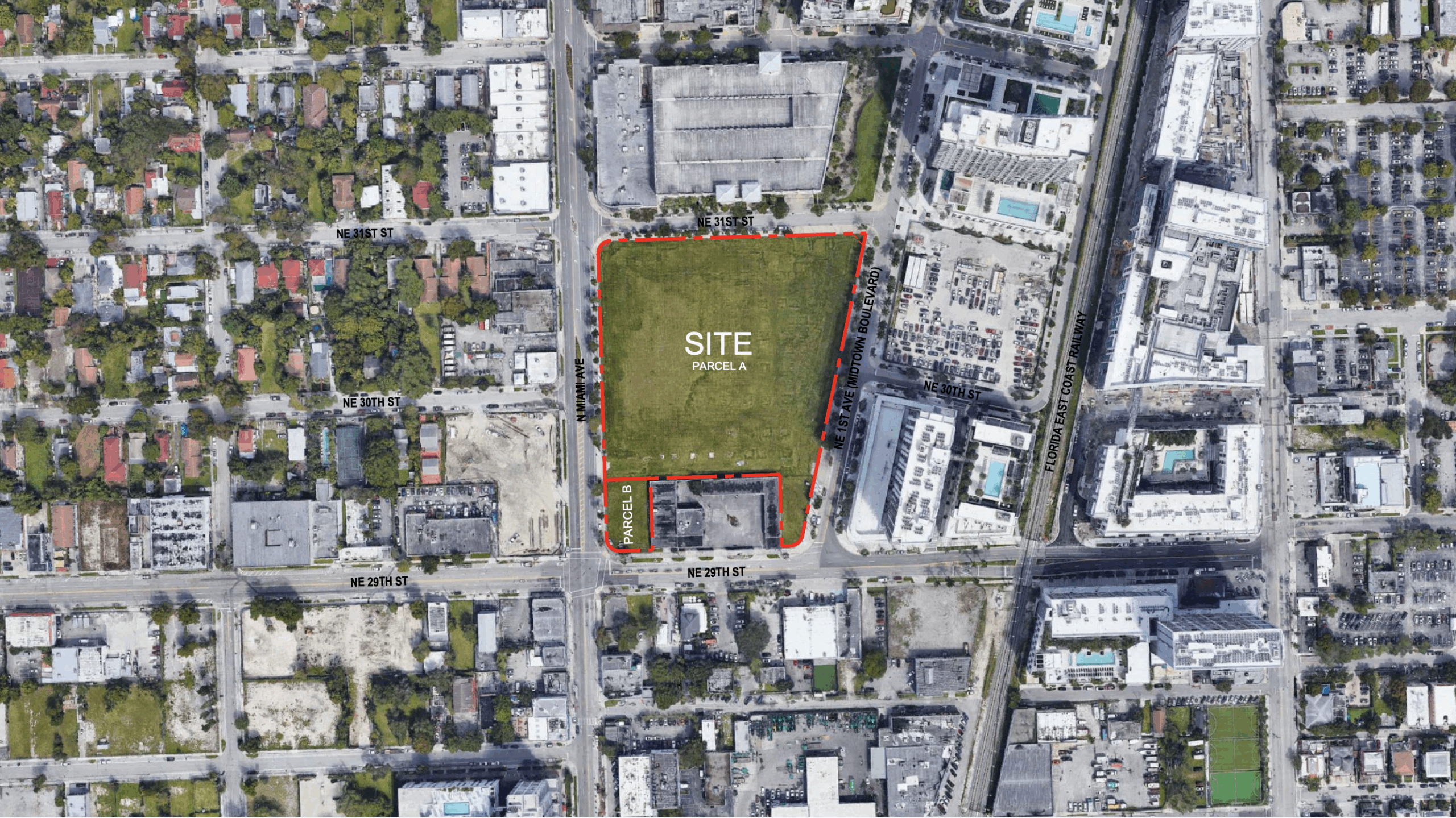 The 4.6-acre property is located between North Miami Avenue and Northeast 1st Avenue, bounded by NE 29th Street to the south and NE 31st Street to the north. Currently vacant, the site was previously planned for a Walmart before being acquired by the developers from the retail giant for $26.4 million in 2019. Its central position places it at the convergence of Midtown’s retail corridor and Wynwood’s cultural district, within walking distance of The Shops at Midtown Miami and surrounded by a growing concentration of mixed-use and residential projects reshaping the neighborhood’s skyline.