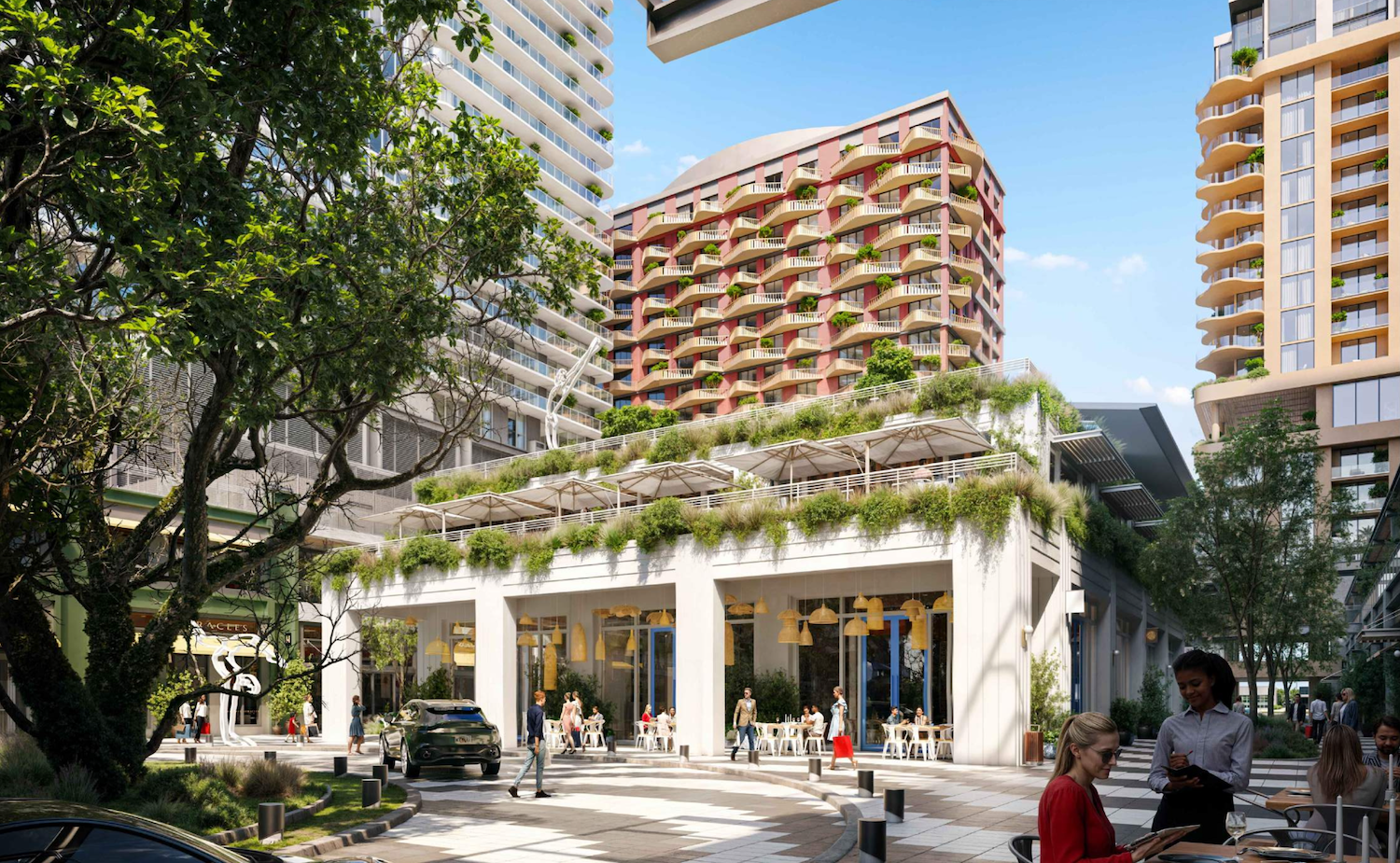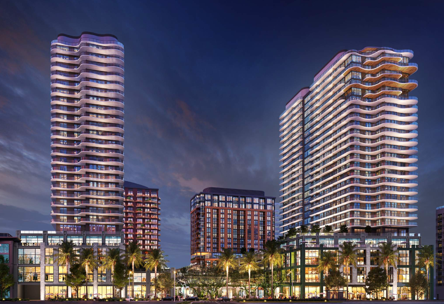 Upon completion, Midtown Park will feature two 28-story towers, two 17-story towers, and a low-rise retail structure connecting the podiums to create a pedestrian-oriented urban environment. Designed by Arquitectonica, the master plan centers on two primary plazas—one fronting Midtown Boulevard and the other along North Miami Avenue—each conceived as civic thresholds enriched with native vegetation, shaded seating, and pedestrian-friendly paving treatments. “The project is designed to act as a connective tissue between the established retail core of Midtown and the cultural and entertainment momentum of Wynwood,” said Sherri Gutierrez, principal at Arquitectonica.