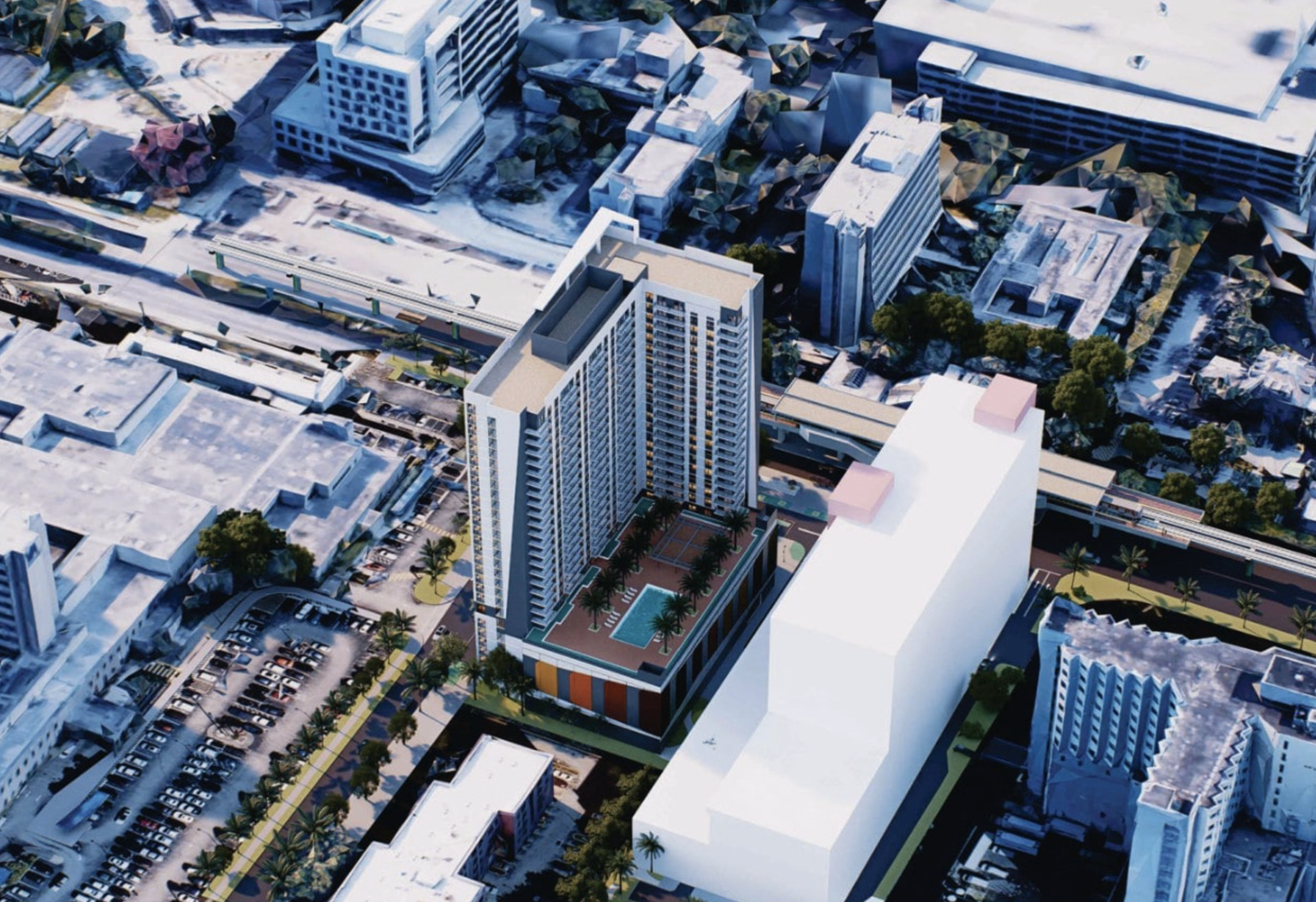 Planned amenities include a landscaped pool deck, fitness and wellness center, co-working spaces, and resident lounges. The ground level will contain approximately 3,200 square feet of retail space, with 346 parking spaces provided in a structured garage managed in partnership with the Miami Parking Authority. The site’s adjacency to the Metrorail station supports the city’s broader push toward transit-oriented housing near major employment nodes.