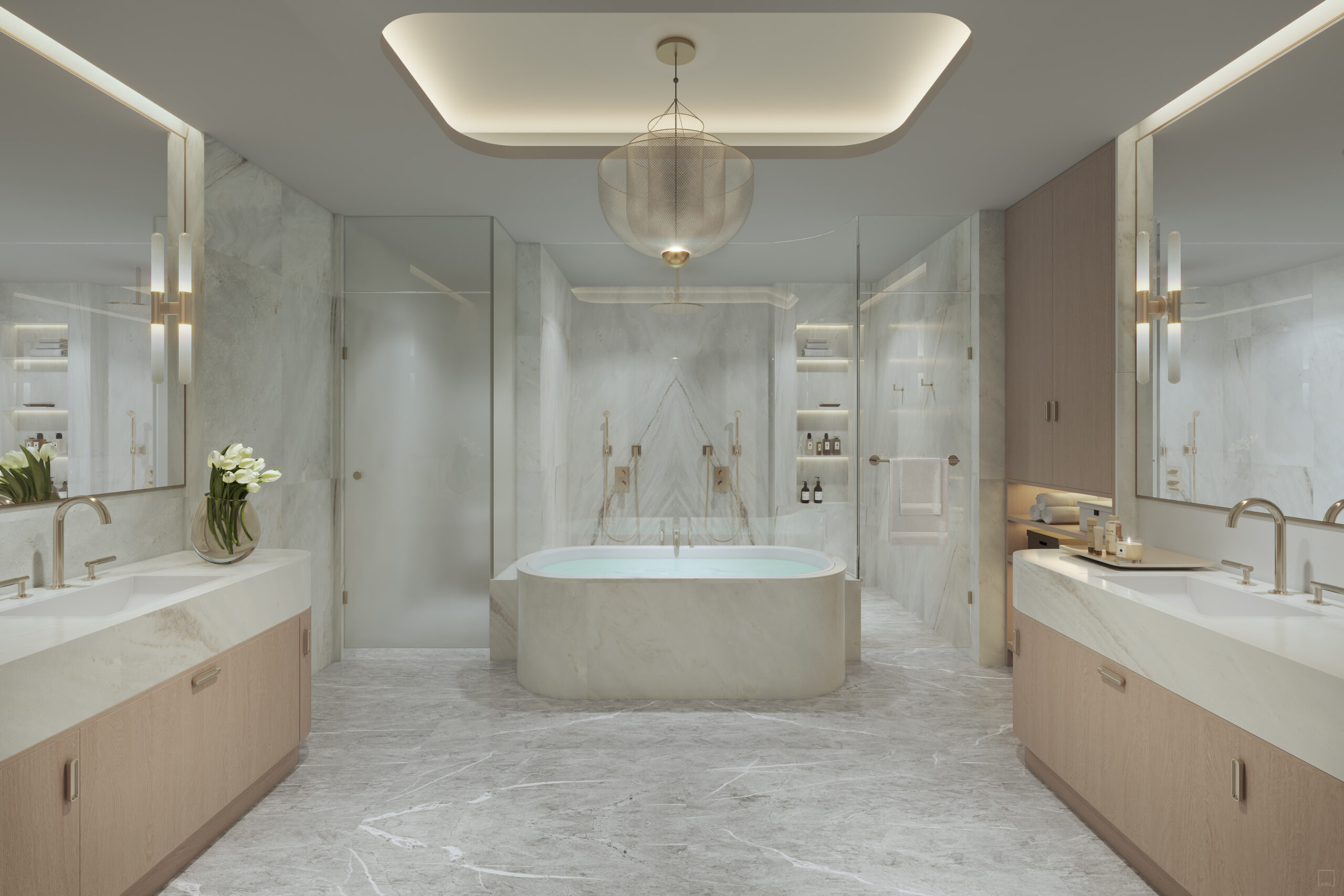 Residents will have access to more than 19,000 square feet of indoor and outdoor amenities organized around a wellness focused lifestyle. The programming includes the Sage Wellness Spa with steam, sauna, and cold plunge areas, private treatment rooms, his and hers locker facilities, and outdoor terraces. Additional offerings include a fitness studio with advanced exercise equipment, a movement studio, and a dedicated yoga lawn.