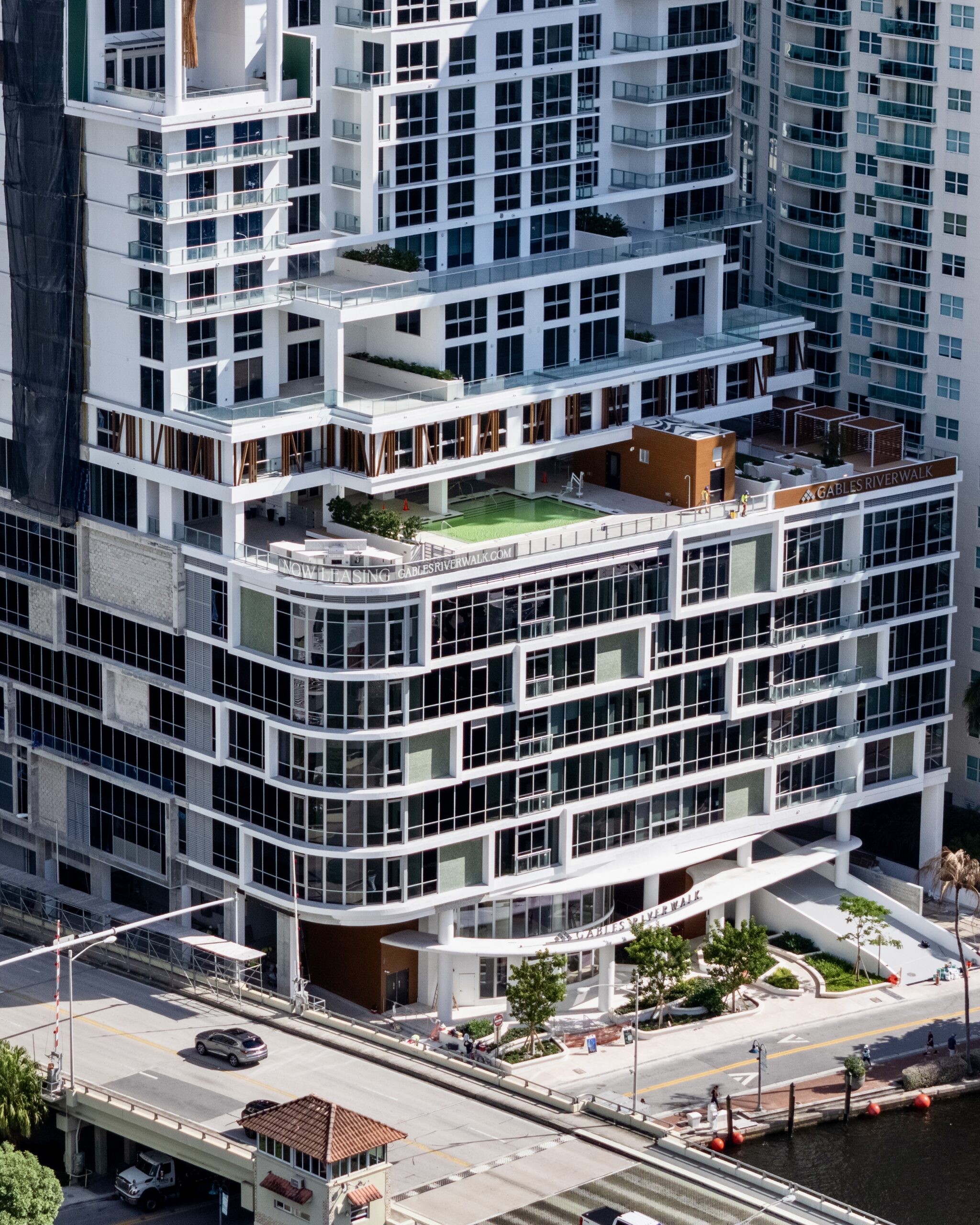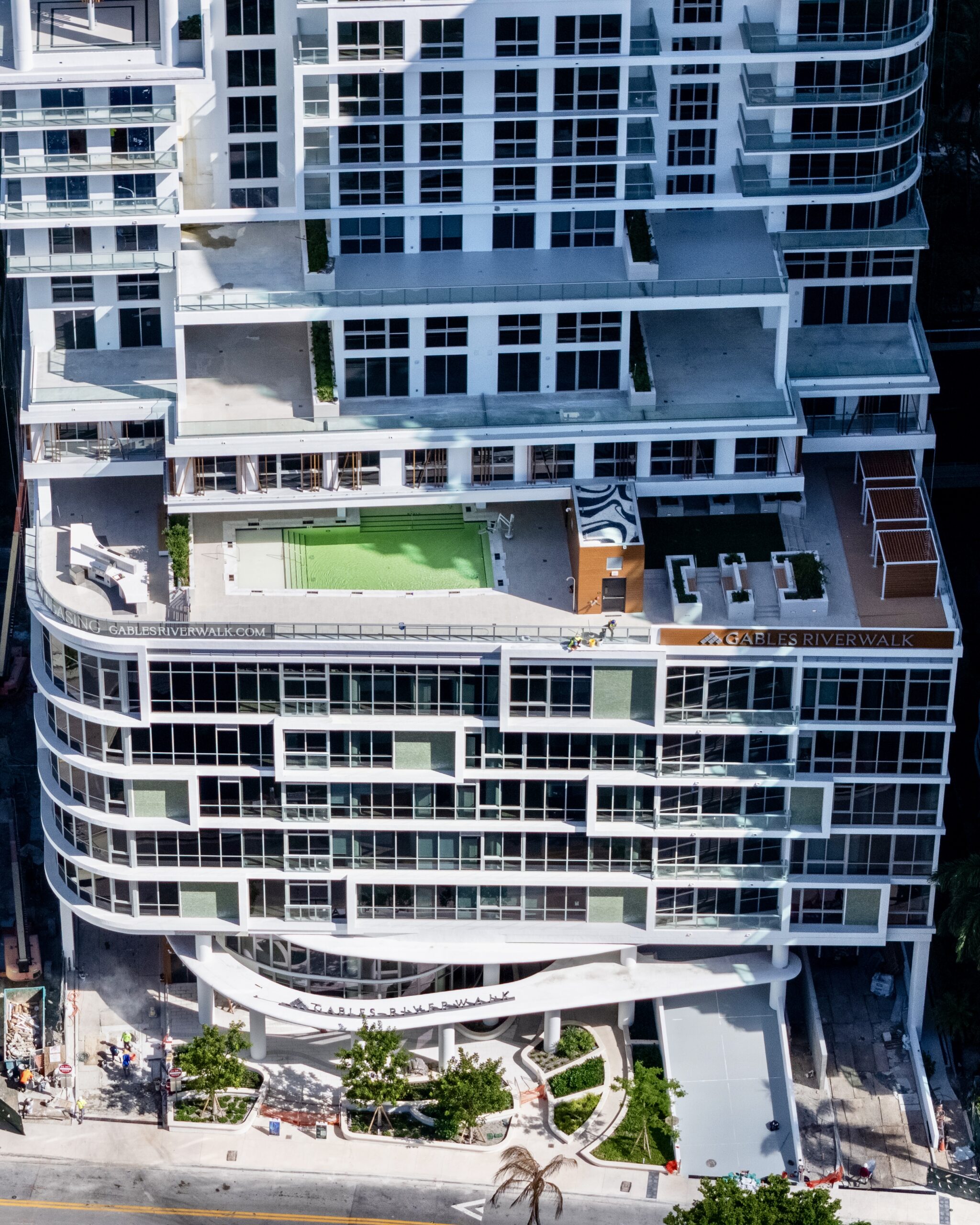 Work has been completed on Gables Riverwalk, a 43-story residential tower located along the north side of the New River at 333 North New River Drive East in the Las Olas section of Downtown Fort Lauderdale. Designed by Borges Architects & Associates with CFE Architects as the architect of record and interior design by ID & Design International, and developed by Gables Residential, the 493-foot-tall structure yields approximately 587,000 square feet of space and contains 295 residential units. KAST Construction served as the general contractor. Monthly rents range from $3,644 to $8,229, offering a selection of one- to three-bedroom residences spanning 776 to 2,130 square feet. Move-ins are expected to commence this month.
