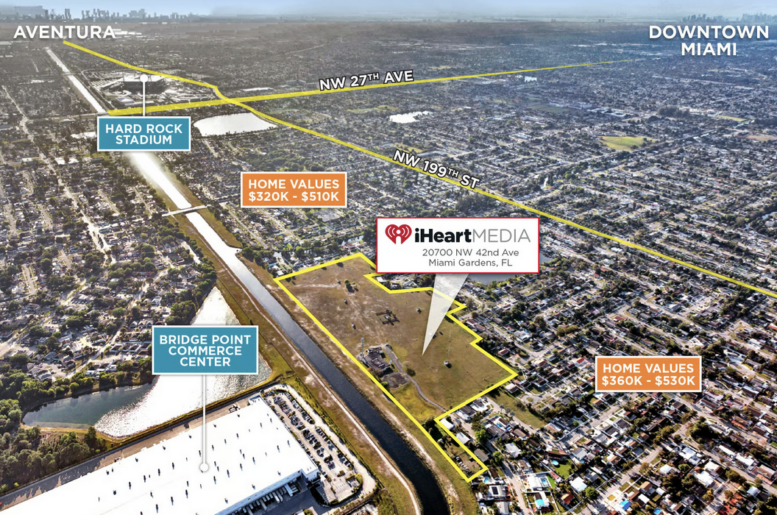 Bluenest also has the 26.5-acre site under contract from its current owner, iHeart Radio, for $14 million. Aerial renderings show that the parcel is mostly vacant, save for several telecommunications towers. Bluenest has been bullish on developing residential communities in Miami-Dade County; the South Florida Business Journal reports that the firm has more than 2,800 homes planned, with construction ongoing on 400.