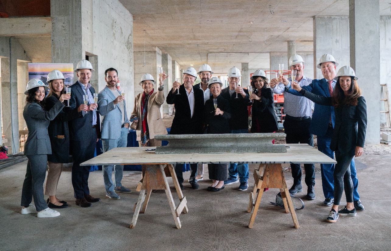 Developers of The Edge Sarasota toast the building’s topping off with buyers and team members.