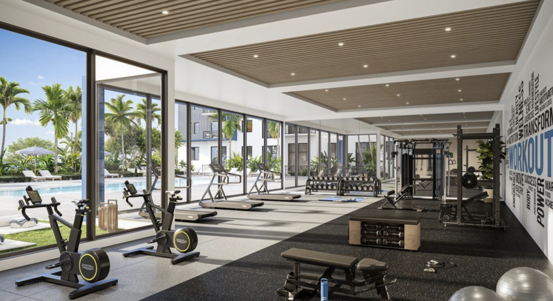 There would be more than 6,000 square feet of interior amenities, including a fitness center. Image by MS Architects