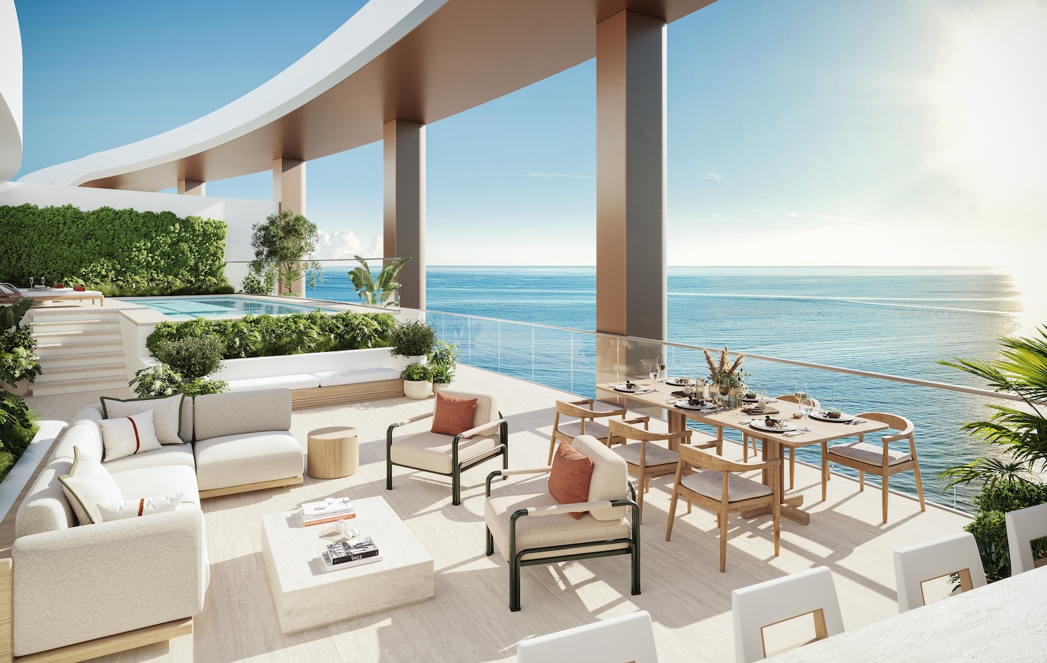 The tower’s Penthouse Collection features homes with airy terrace with ocean views. Credit: ARX CREATIVE