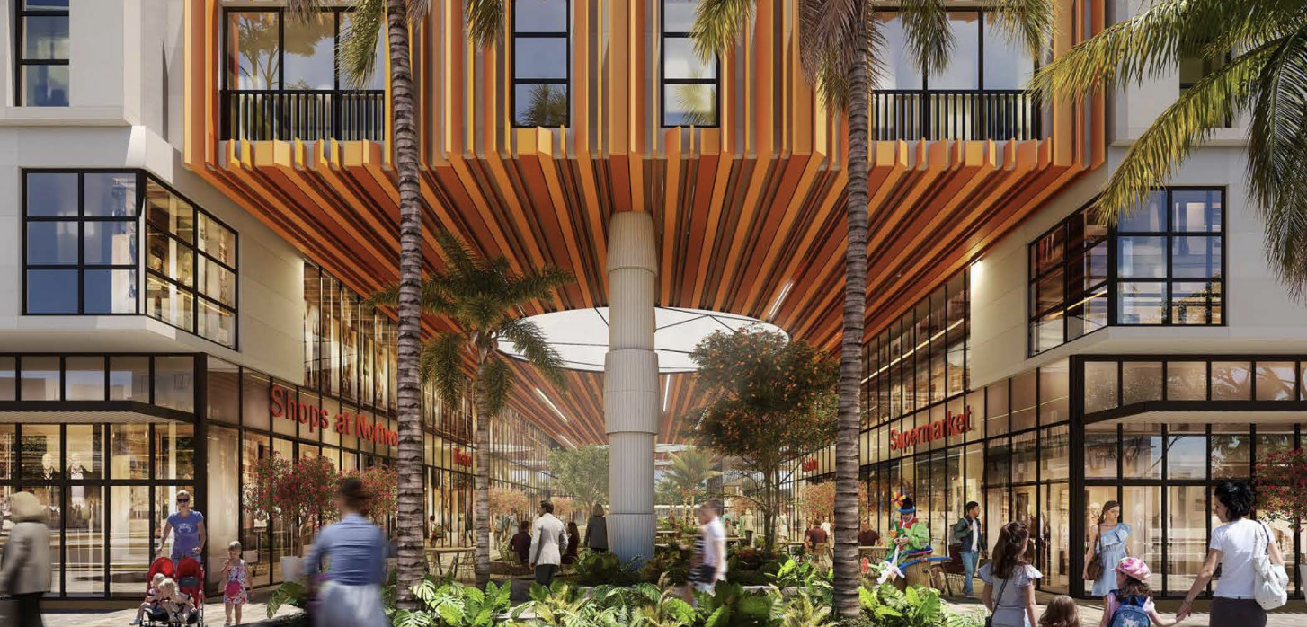 The District at Northwood will feature 382 luxury apartments; residents would have access to a rooftop swimming pool and spa, private fitness center, and racquetball court. Another key feature of the District at Northwood will be the 60,772 square feet of Class A restaurant and retail space. Kobi Karp is the architect.