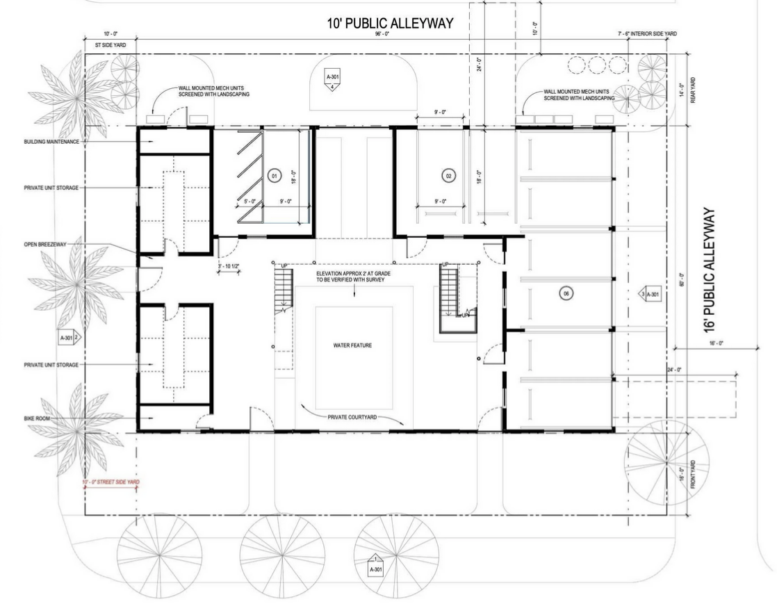 Coral Development intends to spend $2 million to make its 11-unit development possible. Storyn Studio for Architecture designed the venture. Conceptual renderings show that the low-rise buildings would occupy the east and west sides of the property, facing a courtyard and water feature.