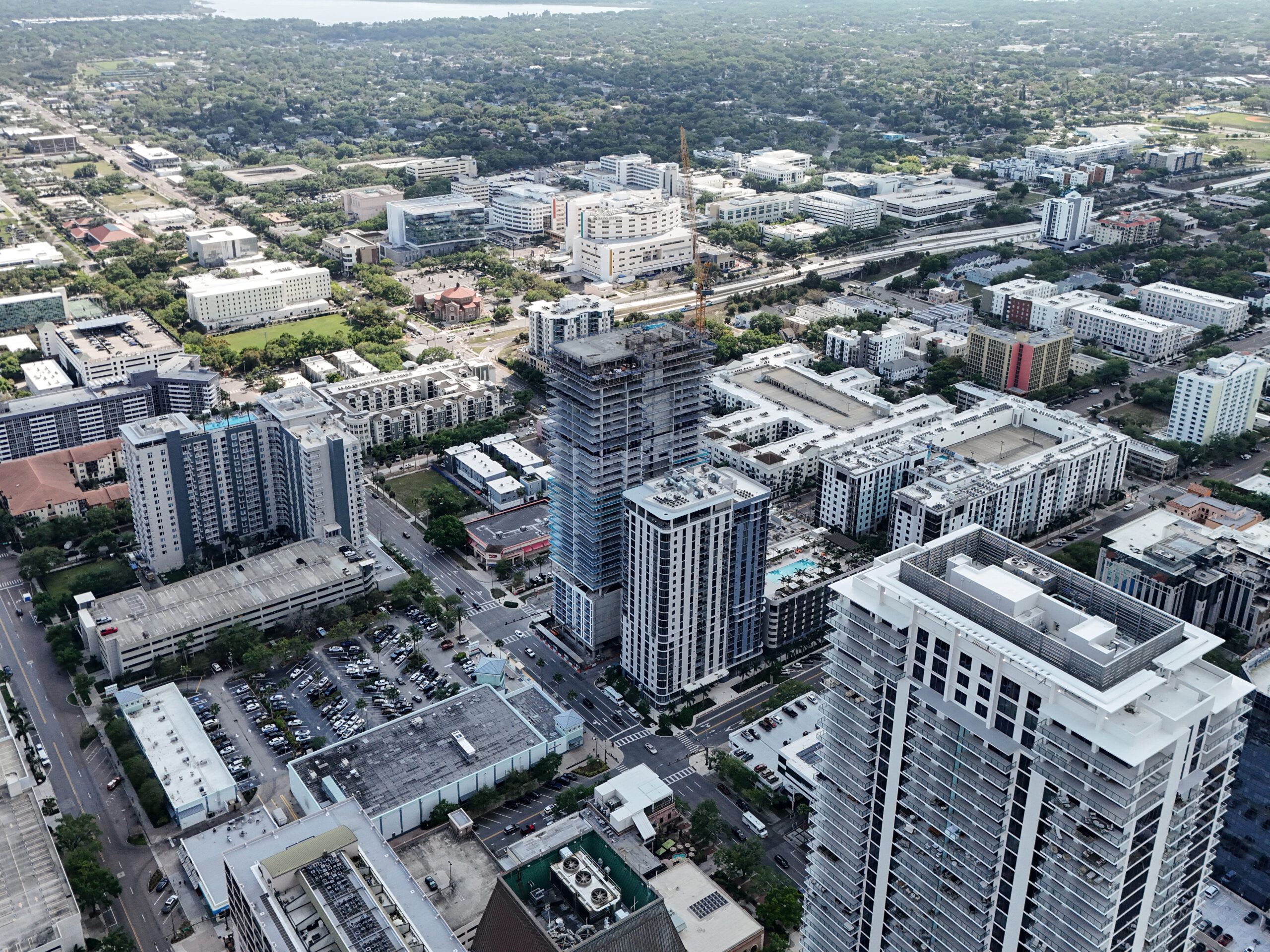 Construction has topped off on 3rd & 3rd, a 33-story, 375-foot mixed-use development at 235 3rd Street South in downtown St. Petersburg. KAST Construction is serving as the general contractor for St. Pete-based developer Echelon in partnership with Third Lake Capital, with design by Baker Barrios Architects. The tower rises at the northwest corner of 3rd Avenue South and 3rd Street South, directly across from the Publix-anchored University Village shopping center and adjacent to EVO, a 23-story residential tower completed in 2023. Upon completion, 3rd & 3rd will yield 262 apartment units, a 330-space parking garage, and approximately 15,000 square feet of ground-floor retail space, placing it among the ten tallest buildings in the city.