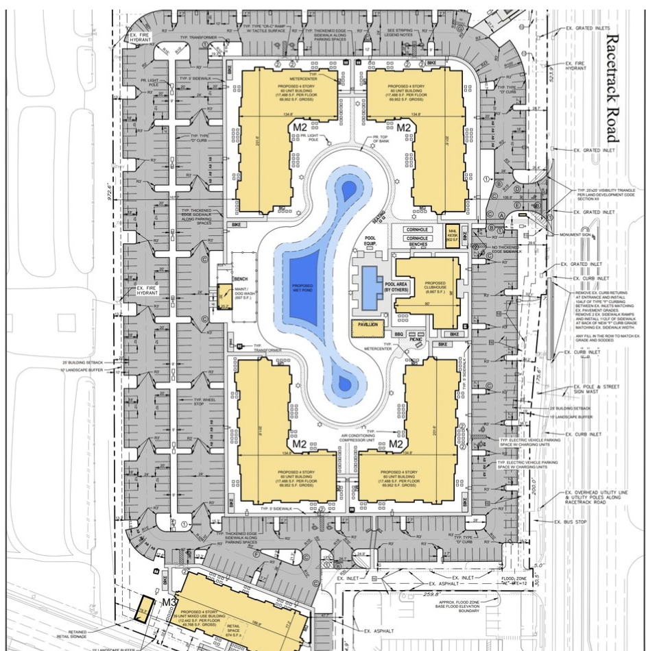 Alton Brandon would comprise 280 residences spread across five four-story buildings, offering a mix of one-bedroom to three-bedroom layouts. While information is limited about the residences themselves, the Tampa Bay Business Journal shares that the venture would host a variety of on-site amenities, including a swimming pool, pet spa, and clubhouse. Residents would also have access to 365 parking spots, 16 of which would be in covered garages.