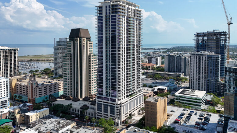 YIMBY recently visited Downtown St. Petersburg and scoped views of Art House, a 42-story condominium tower that recently completed construction at 275 1st Avenue South. Developed by Kolter Urban and designed by 10SB, with McNamara Salvia as the structural engineer, the 450-foot-tall superstructure yields 244 residential units above a parking garage spanning floors two through eight with 482 spaces, along with 4,936 square feet of ground-floor retail space along Central Avenue. Coastal Construction served as general contractor, ID & Design International handled interiors, Kimley-Horn is the civil engineer, and Smith & Associates Real Estate is the exclusive broker. The development is now more than 90 percent sold.